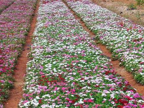 石竹株型低矮,莖稈似竹,葉叢青翠,自然花期5-9月,從暮春季節(jié)可開至仲秋,溫室盆栽可以花開四季?;斏Χ?,單生或成對,也有呈圓錐狀聚傘花序,花徑不大,僅2至3厘米,但花朵繁茂,此起彼伏,觀賞期較長?;ㄉ邪住⒎?、紅、粉紅、大紅、紫、淡紫、黃、藍(lán)等,五彩繽紛,變化萬端。園林中可用于花壇、花境、花臺或盆栽,也可用于巖石園和草坪邊緣點綴。大面積成片栽植時可作景觀地被材料,另外石竹有吸收二氧化硫和氯氣的本領(lǐng),凡有毒氣的地方可以多種。切花觀賞亦佳。